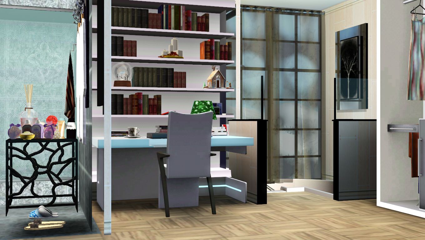 Лот на участке 20 на 20 в Хиден Спринглс. На лоте есть костерок с лавочкой, можно попить горячего чая из термоса, крыльцо и дровянник для камина. Два этажа. Кухня и зал совмещены. Кухня с продуктами и выпечкой. Есть бар, стол накрыт, у телевизора тоже столик с фруктами, чтоб после ужина можно было встретить Новый год шампанским. Елочка с подарками, вместо прихожей просто зеркало и полка. На втором этаже спальня и ванная со стеклянной стеной, гардеробы и небольшой рабочий уголок. Есть балкон с подзорной трубой. Хотелось сделать интерьер незабитым и современным. Живет там журналист, довольно богатый. Думается в рождественскую ночь, он сделает предложение своей любимой, коробочка маленькая, подарок с кольцом, лежит на полке под телевизором. В спальне для двоих есть коробка печенья, вино и, конечно, мандарины. Весь интерьер в духе современности, несмотря на довольно традиционный вид.